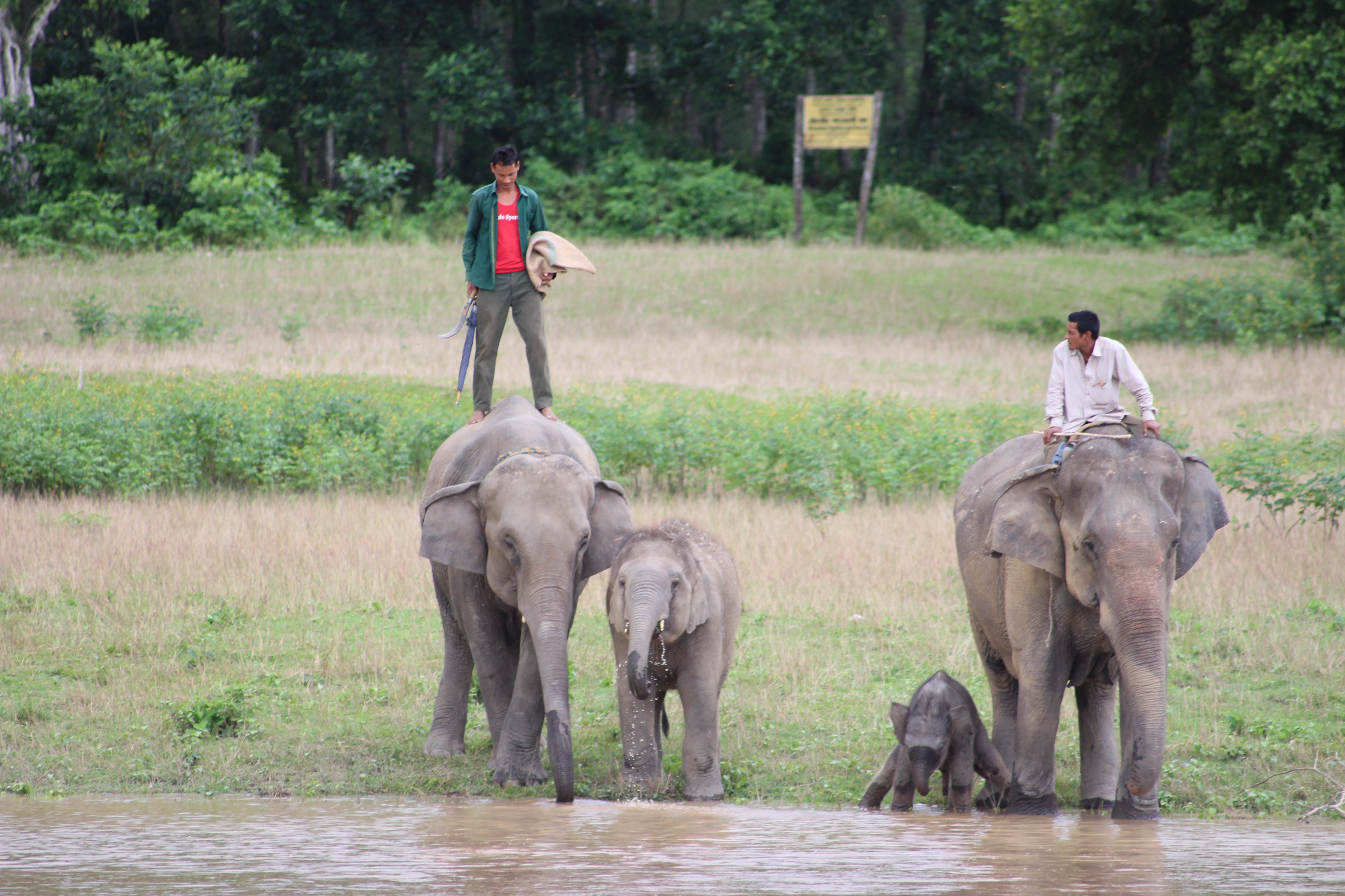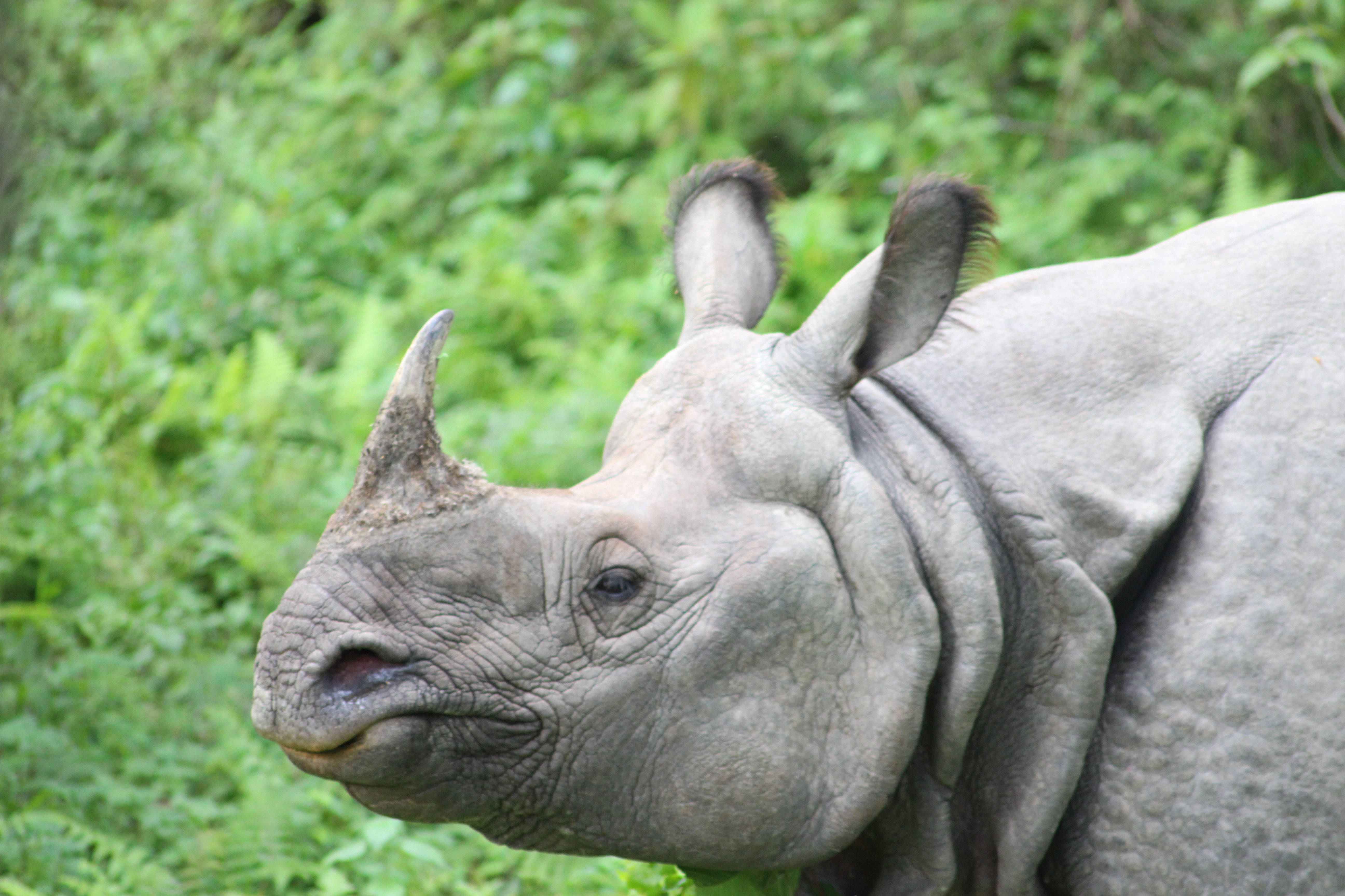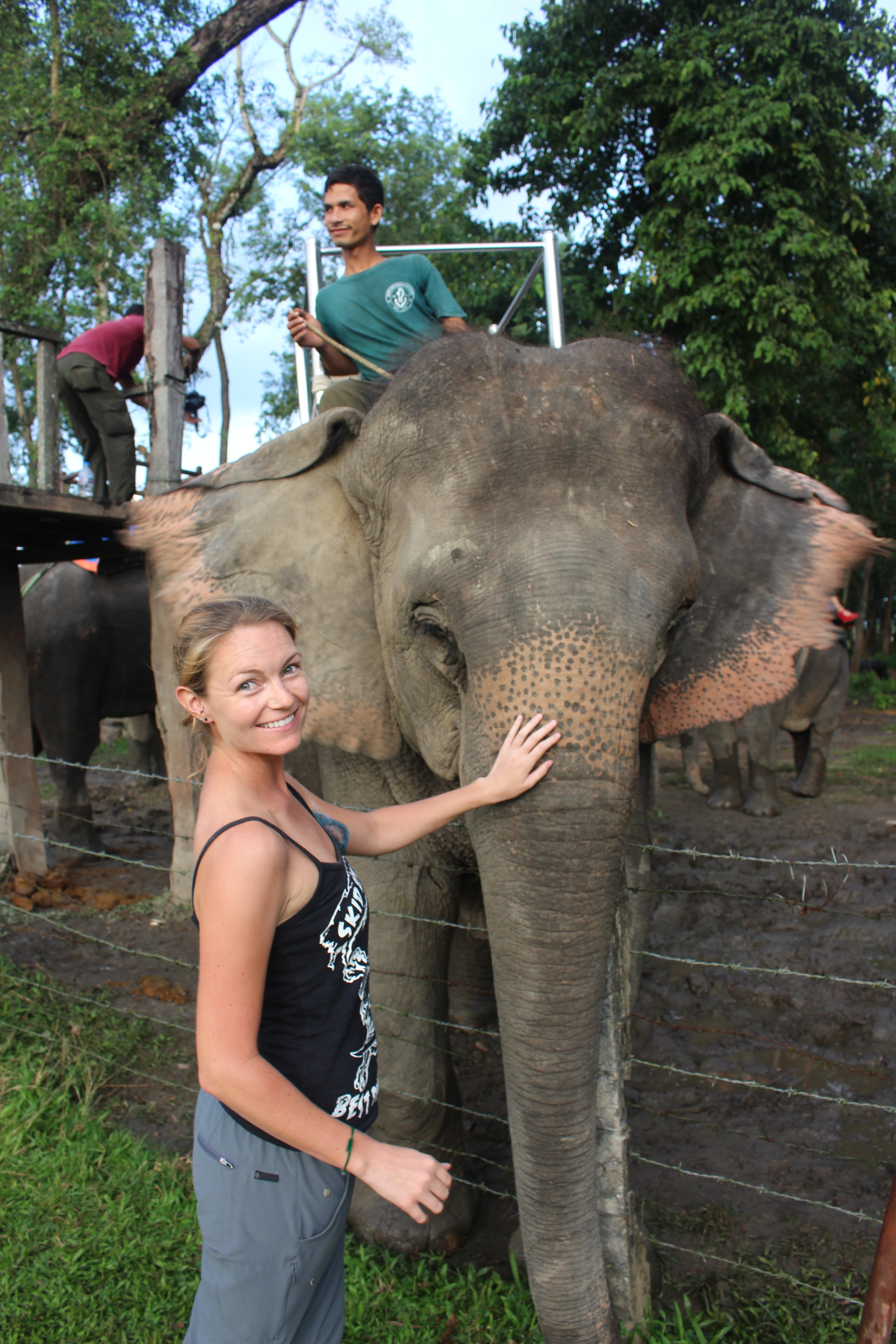 After returning back to the village we decided to go back into the jungle with a different mode of transport. On elephant back of course! That afternoon we climbed aboard our elephant and our driver/guide led us back deep into the jungle with several other elephants. For an hour or so we lumbered up and down uncomfortably on the beasts back through rivers and jungle, getting whipped in the face more than a few times by tree branches. All part of the charm I say. As we got deeper into the jungle we finally found what we were looking for. We came into a clearing and there… in the green jungle… was a massive Asian Rhino. The Asian rhino is much different in appearance than the African rhinos we had seen months before, larger and darker with a smaller horn but still incredibly intimidating. We followed it for a bit in awe of its sheer size and uniqueness before slowly making our way back to the village for the night.