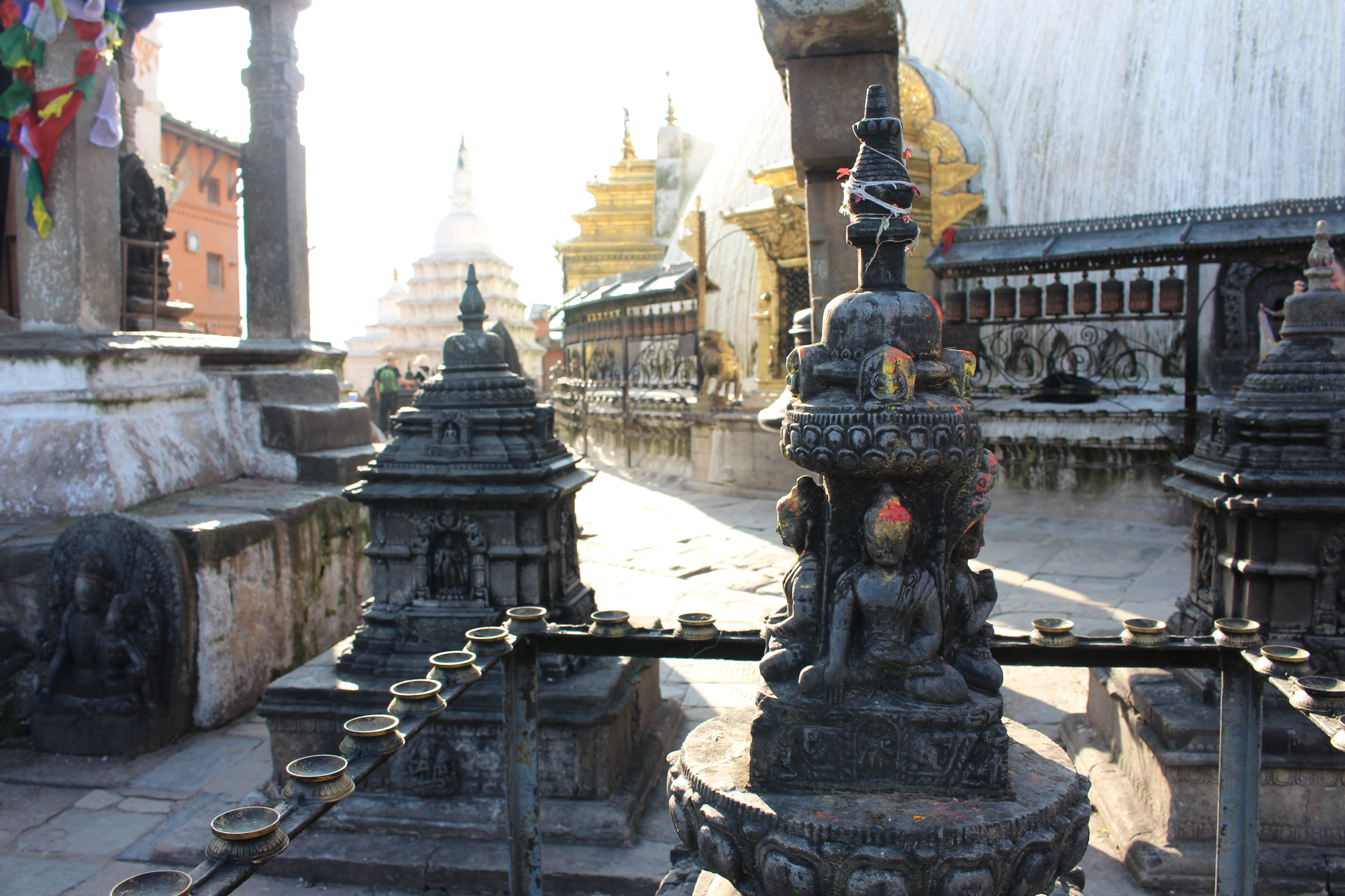 Our final major sight to see would be the massive hilltop “Monkey Temple” of Swayambhunath. Perched atop a large hill in the middle of the valley, The Swayambhunath Stupa and temple are truly spectacular beyond all explanation. With thousands of prayer flags suspended between the temples and surrounding trees, 360 degree views of the surrounding valley and hundreds of monkeys playing all around you, it is one of those places that you just have to experience to truly understand its aura.