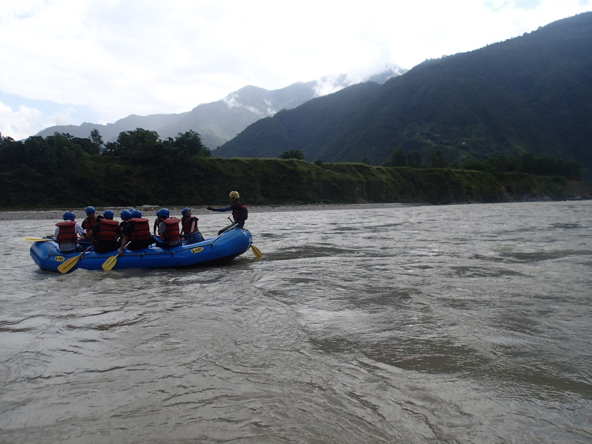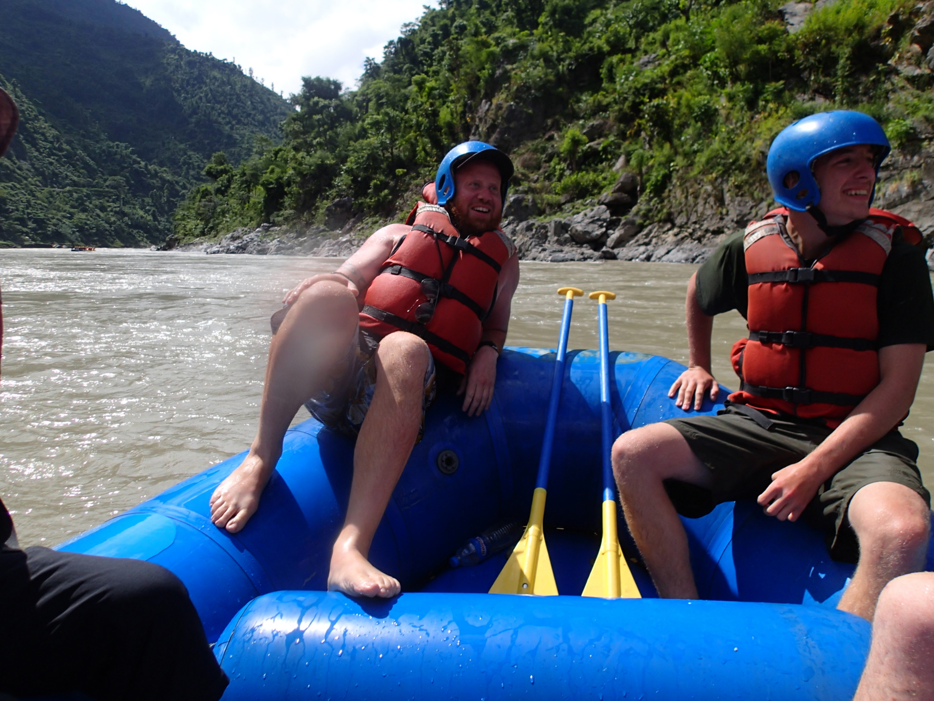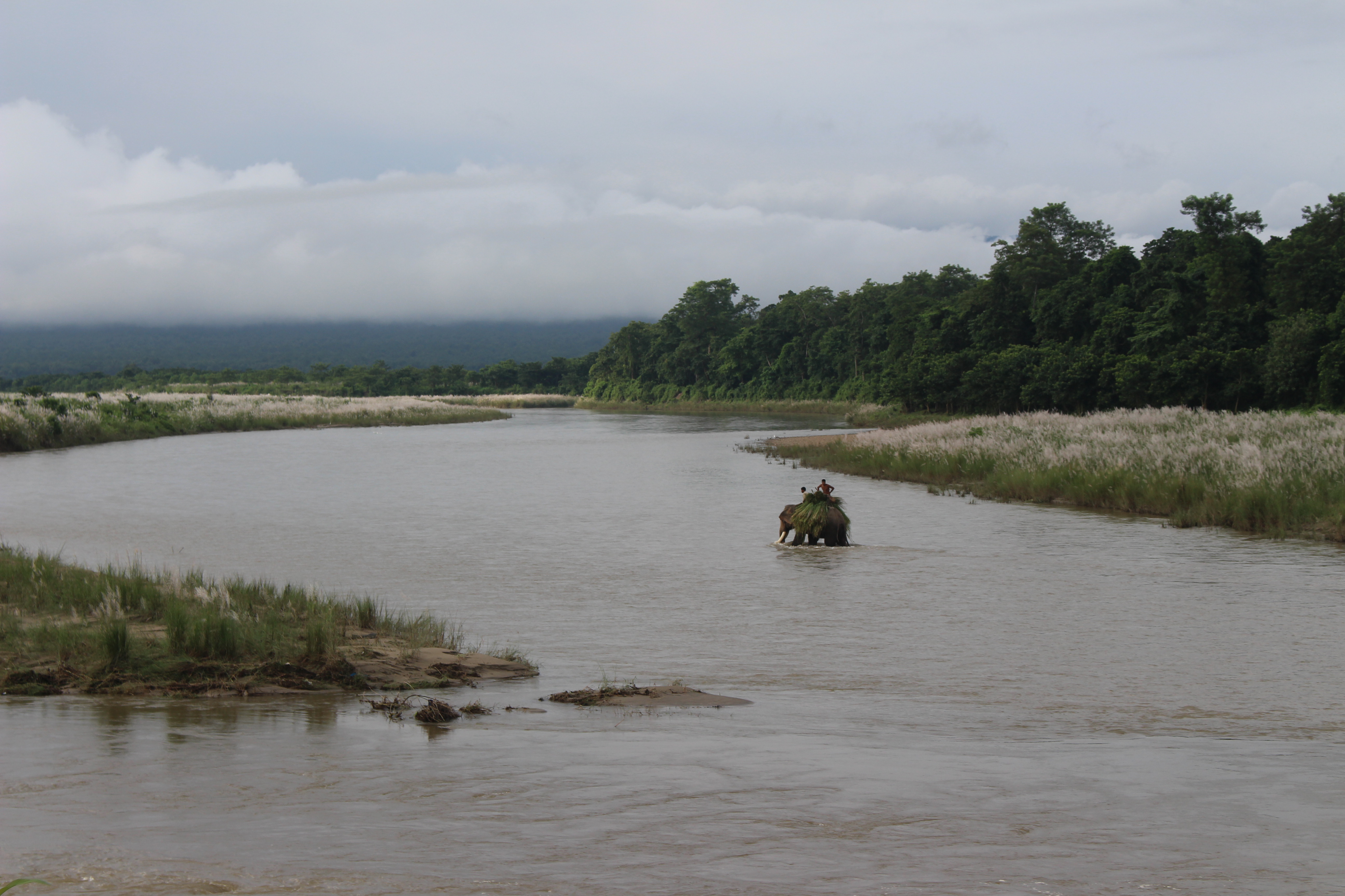 Leaving Pokhara after several incredible weeks was about as hard of a departure as we’ve had on this trip. To make it a little easier we decided to make our way down to our next destination Chitwan National Park, by whitewater raft. Why bus when you can raft I always say?! We found a rafting company that agreed to shuttle our backpacks down to us in their pick up van (talk about service) and we set out to spend an incredible day rafting through the mountains south towards the Terai jungle. Rafting really is so much better than a bus (understatement). For four hours we found ourselves on an absolutely gorgeous wide river winding through rolling green hills and past waterfalls and scenic village after scenic village. Local village children would run out onto suspended foot bridges above us to wave to us as we passed by. Smiling and laughing when we waved back. After a long day rafting and swimming in the cool river, we reached the exit point and ate a late lunch at a riverside shack, eating home cooked Dal Bhat, Nepali all-you-can-eat curry and rice. Warming to both our tummies and our souls. After lunch we piled into a local public bus we flagged down to take us the final hour down to Chitwan and sat packed in on top of bags of rice with barely enough space to turn our heads. Never a dull moment on the road.