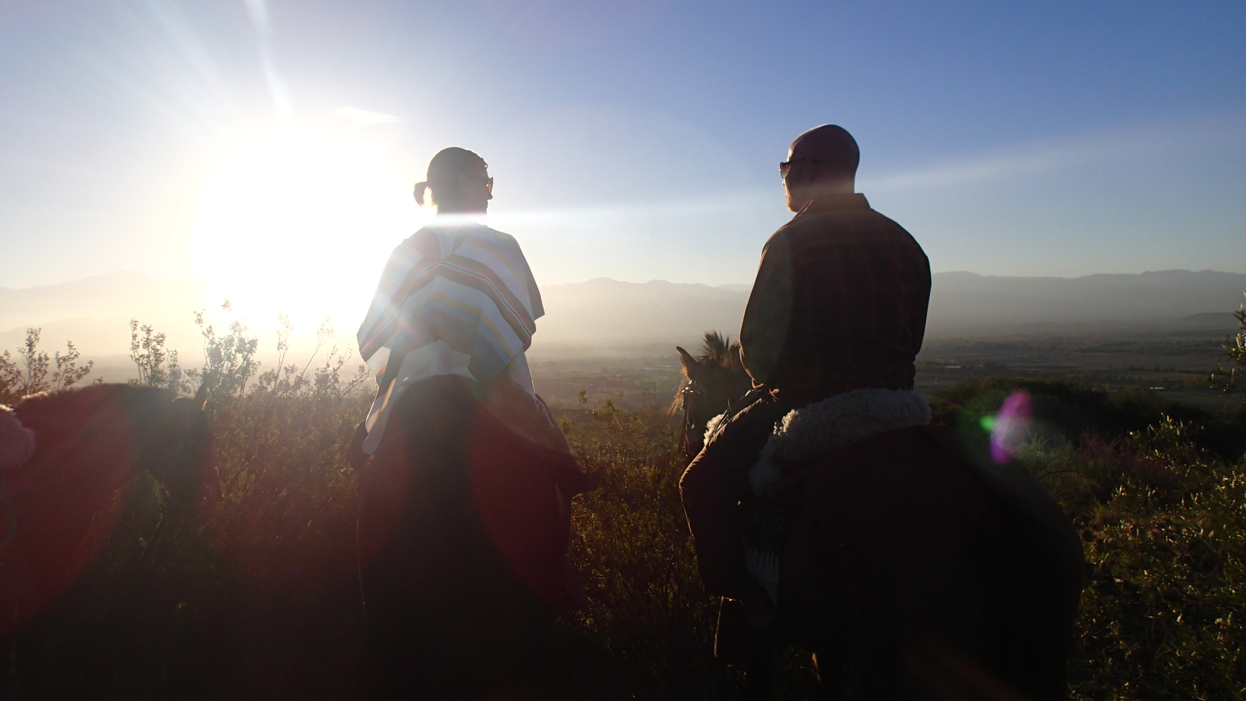 The following day we made our way to a local farm to have a semblance of an authentic Gaucho experience. The Gauchos are the legendary Argentinian cowboys known for their love of horses, the guitar, wine and asados (Argentininian bbq’s). The farm and the countryside were breathtaking and as we rode our horses into the hills along a dirt and rock trail the views over the farms, orchards and vineyards of the valley became more and more spectacular. From a cactus covered peak above the entire valley in all directions, we watched the sunset from horseback through the surrounding hills. It would be dark soon. As we made our way down the mountainside in the glow of the failing light, a giant yellow full moon rose over the hilltop beside us. It would light our way as we wound through canyons, across a river and deep into a swamp, our horses shuffling along belly deep in water. We found ourselves in a field of thousands of 6′ Pampas grass plumes, their fluffy white tips were mesmerizing swaying in the breeze and glowing in the moonlight all around us. Words can’t really describe the beauty of the moment. As we arrived back at the family farm, the fire was going strong and steak and chorizo were sizzling above it, filling the air with the aroma of the hearty asado yet to come. The guitars came out, unlabeled glass jugs of local wine hit the fireside table and we feasted into the night with our host family and new friends. The moon full above us and the sound of crickets and whinnying horses in the darkness on the land around us.