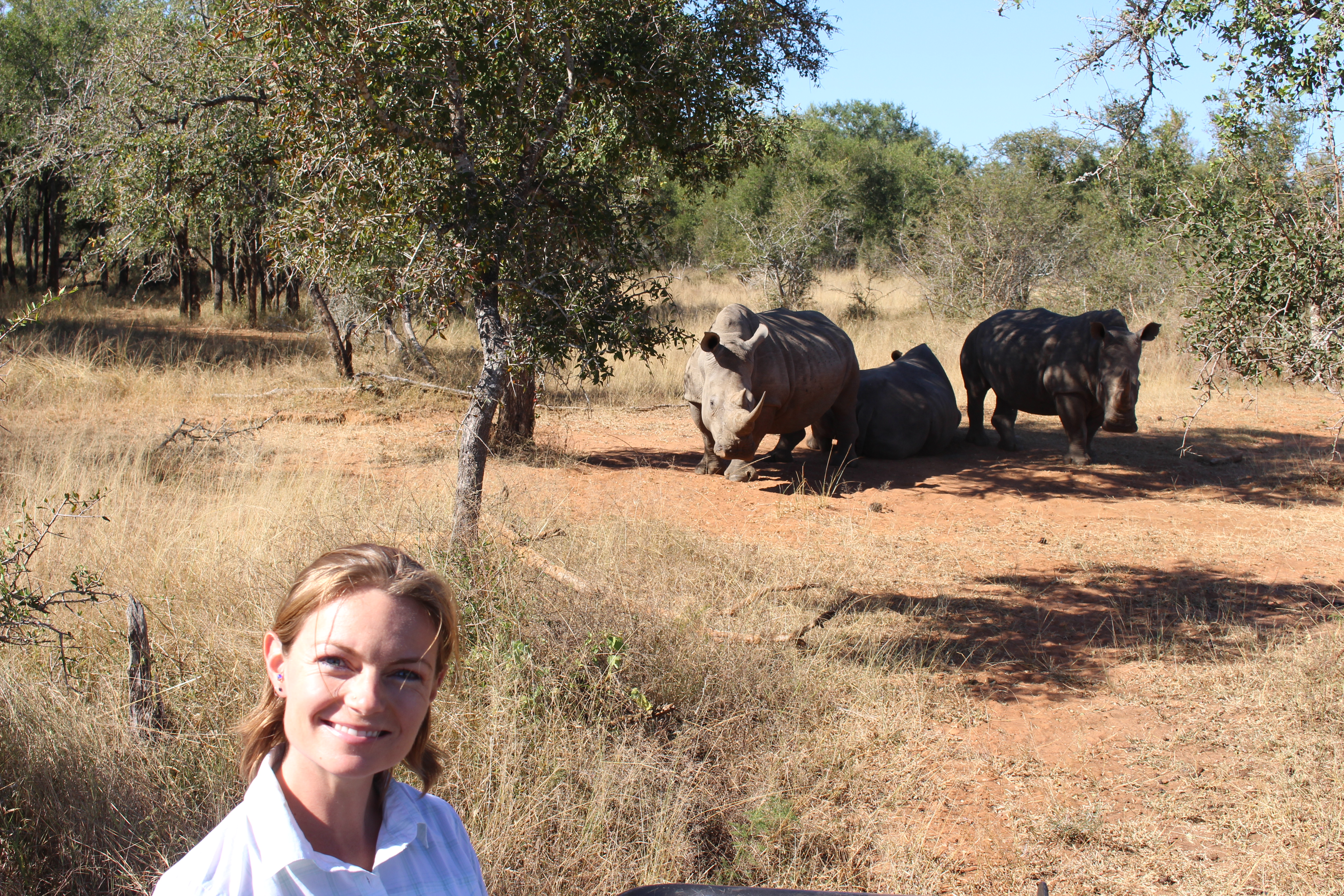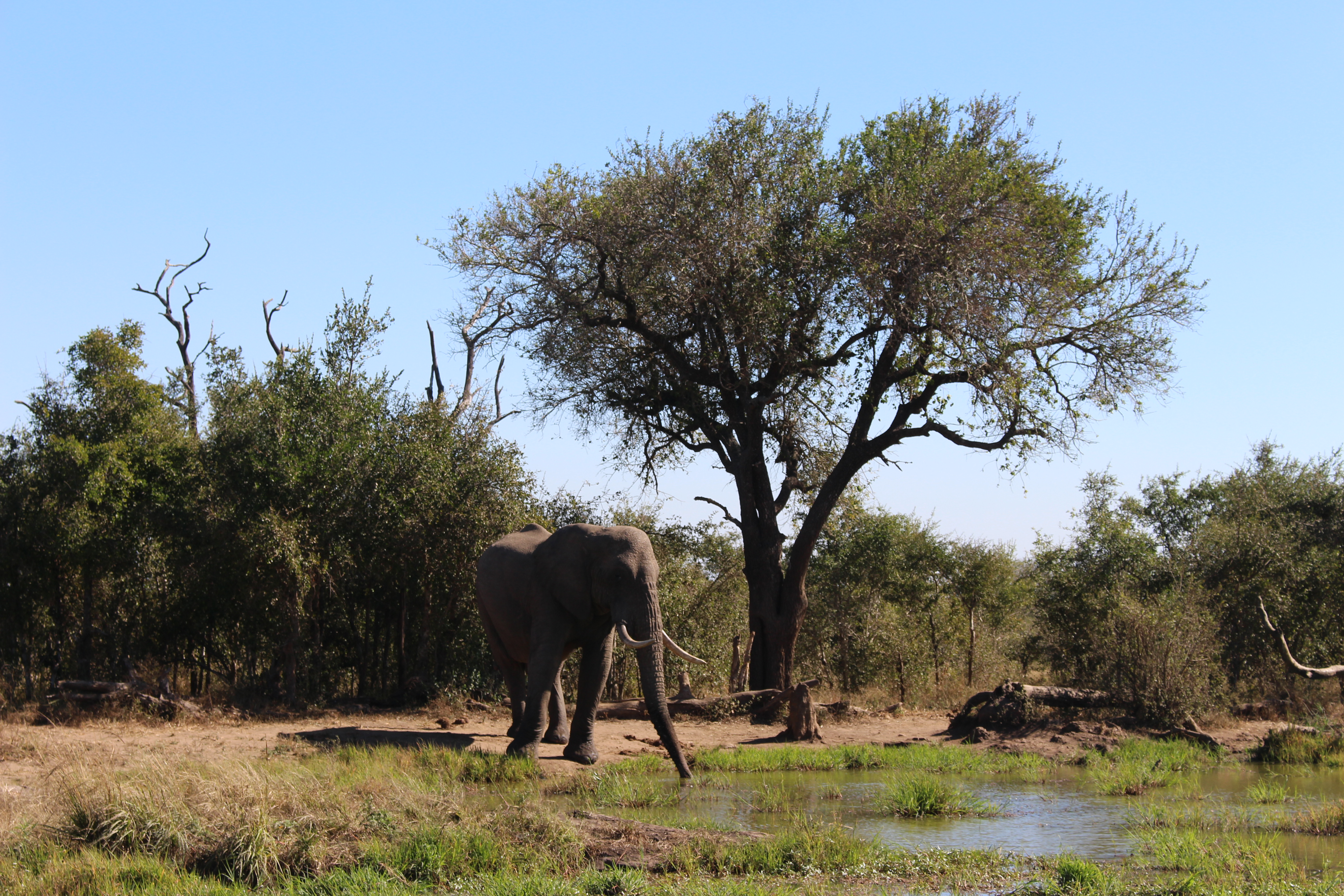 After we had so horribly botched our first African wildlife moment, the next day we headed an hour across the country to the gorgeous Hlane National Park to see what we could find. It was safari time. Hiring a jeep and a guide from the entrance, we set off through the varied terrain in search of the infamous African “Big Five”. Lions, Buffalo, Elephants, Leopards and Rhinoceros. We drove for some time scouring the countryside with no luck before arriving at a watering hole deep in the woods. Directly across the water from us stood a massive full grown wild male elephant towering over all the plants and animals around him. Including us. We sat there for some time in awe watching as the beautiful beast drank from the small pond before we headed off in search of other wildlife. We wouldn’t have to go far. As we headed down a dirt road through a grassy plains like section, we came around a bend and spotted a large male lion lying in the grass near the road. Mind… officially… blown! Our driver took us within just a few feet of the lion which in an open air jeep seemed a little crazy since we were so close he could have easily jumped in the jeep with us before we even had time to turn and run. We sat there for some time watching this king of the jungle as his large golden mane billowed in the wind and every yawn revealed a massive mouth full of teeth designed specifically for killing. We could hear him growling at us as we drove past him which at our proximity honestly made our stomaches drop a bit. What an experience. Two down, three to go. As we made our way deeper into the park we came across a field full of grazing Kudu (an antelope like animal), beautiful Impala and several large imposing Buffalo. Three of the “Big Five” down and the day was only just beginning! After stopping to watch another large male lion and many more elephants deep in the thicket (talk about lucky) we stumbled upon several majestic orange and brown giraffes hanging out in a small clearing. Giraffes being one of my favorite animals, I snuck out of the jeep and was able to walk up close enough to them to draw their attention my way. The smile on my face could have been visible from space. As we continued on past herds of roaming warthogs, monkey covered trees and various other amazing fauna (This was one of those once in a lifetime kinda days), we entered a clearing filled with what appeared to be huge grey boulders bellow a tree. That is until one of the boulders stood up to look at us and revealed itself to be a giant White Rhino! We pulled up close to the group of Rhinos who all raised their heads in curiosity. Somehow we convinced our guide to let us hop out of the jeep (a big no no) and pose for pictures just a few meters in front of the massive creatures. As soon as Laura took two steps in front of the jeep though, the two ton Rhinos all stood up at once to face us and our driver quickly hurried us back into the jeep and hit the gas. Rhinos can run 30mph and inflict a lot of damage fast so with Laura and I laughing back in the jeep, we left our Rhino friends behind and headed out in search of the 5th of the Big Five…the illusive Leopard. A nocturnal animal that blends in so well to their surroundings they are almost impossible to spot during the day time. Our search unfortunately proved futile and we left Hlane that day having seen an incredible four of the Big Five (and so much more) and having had possibly the greatest wildlife experience of our lives.