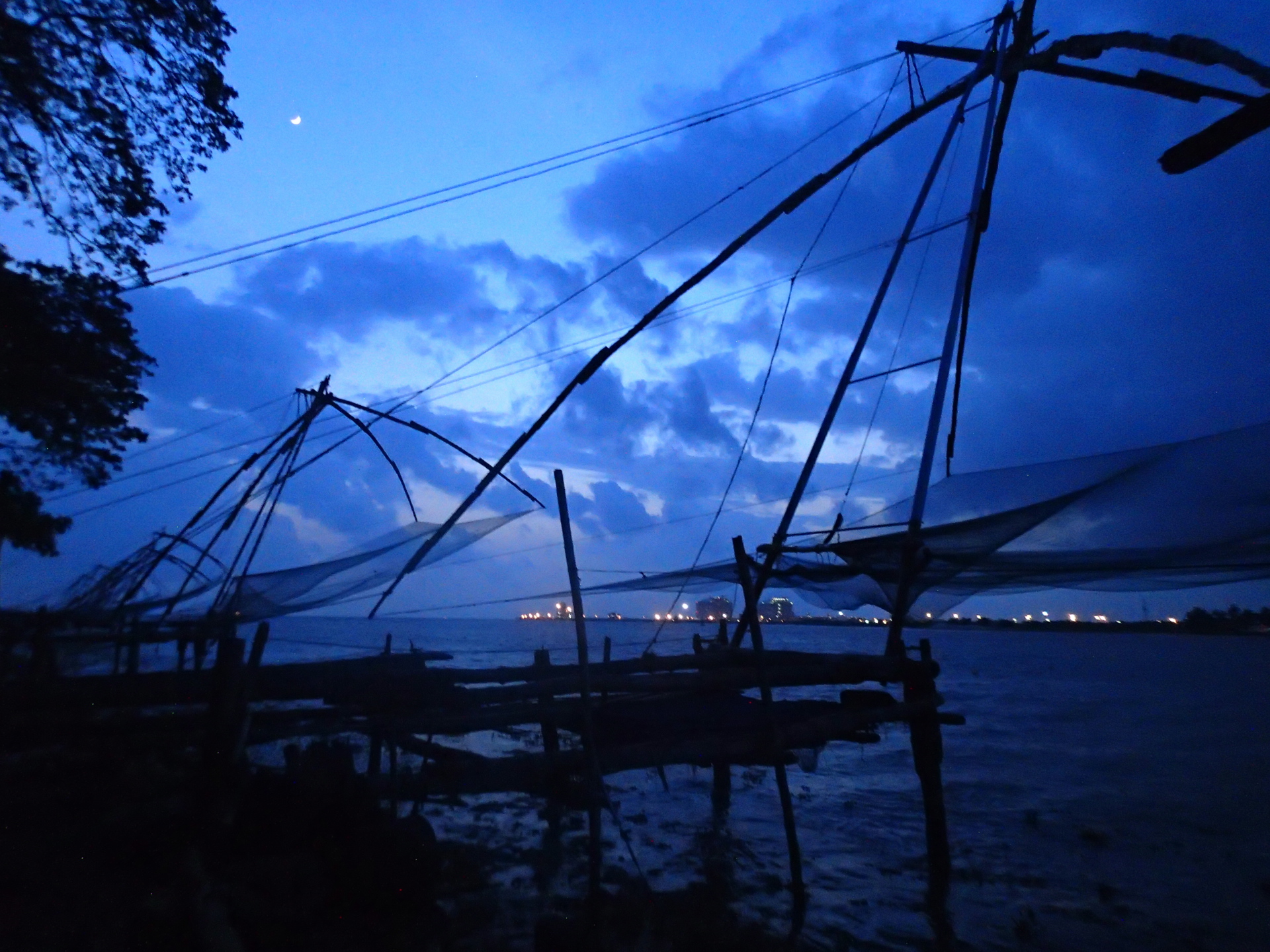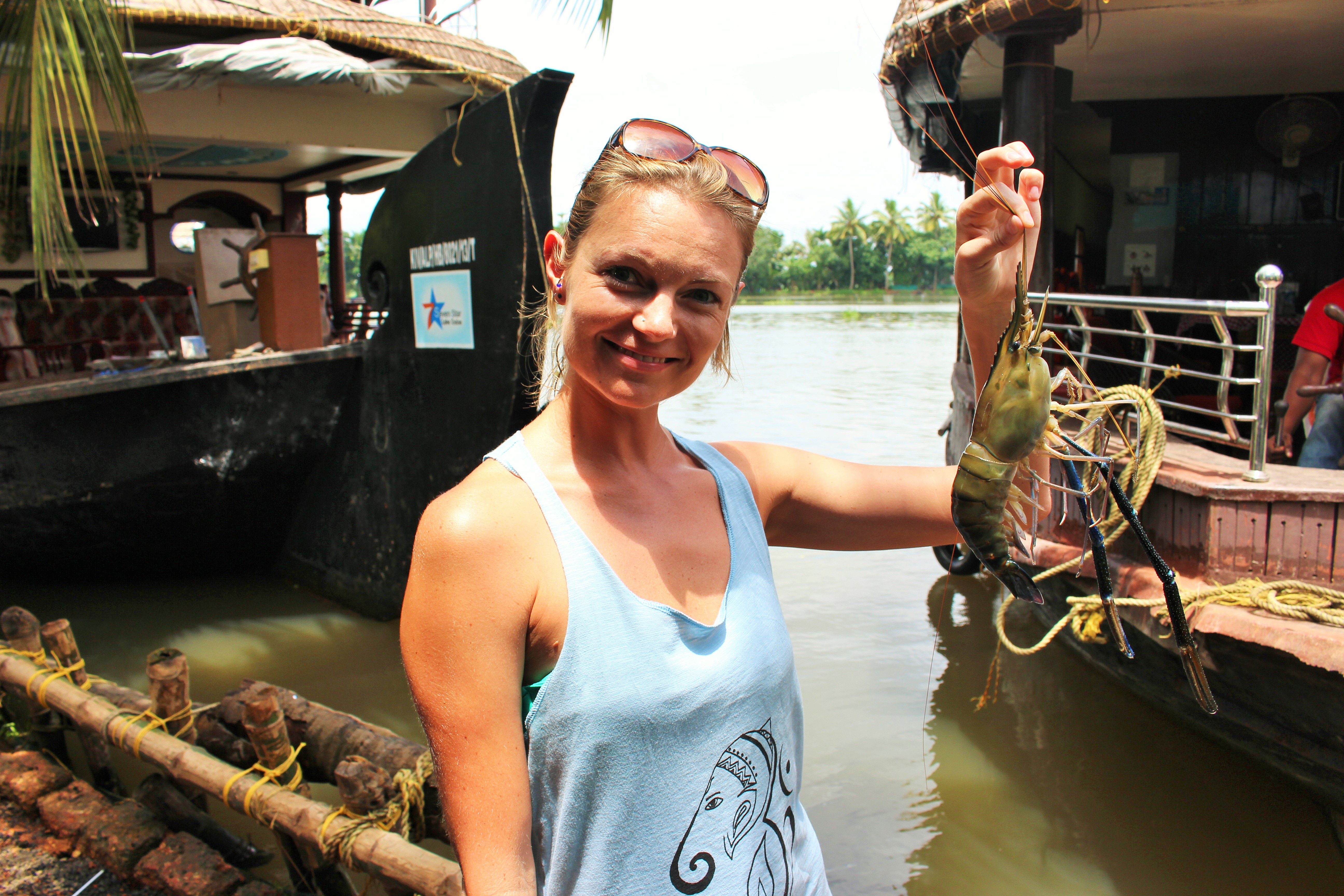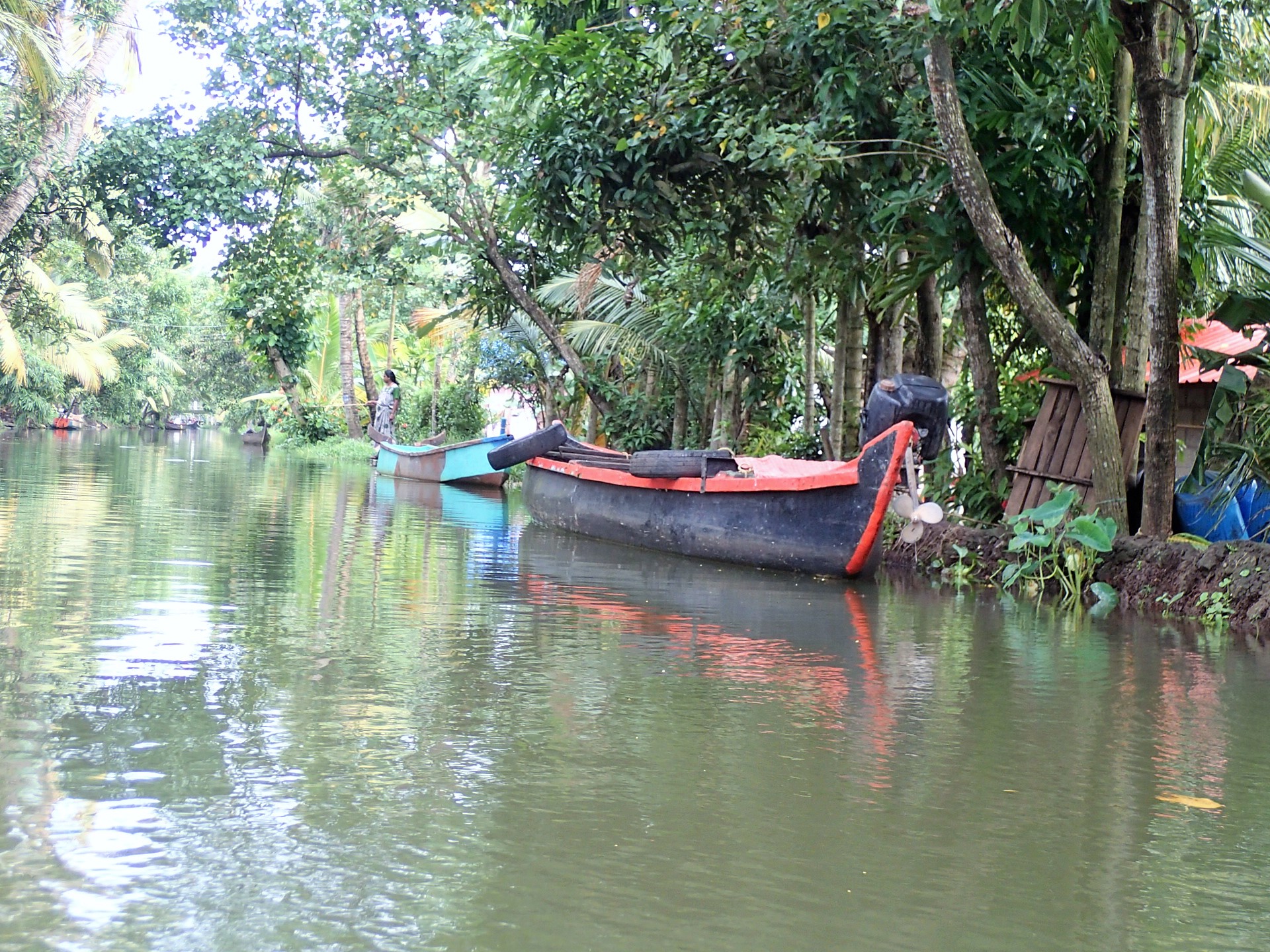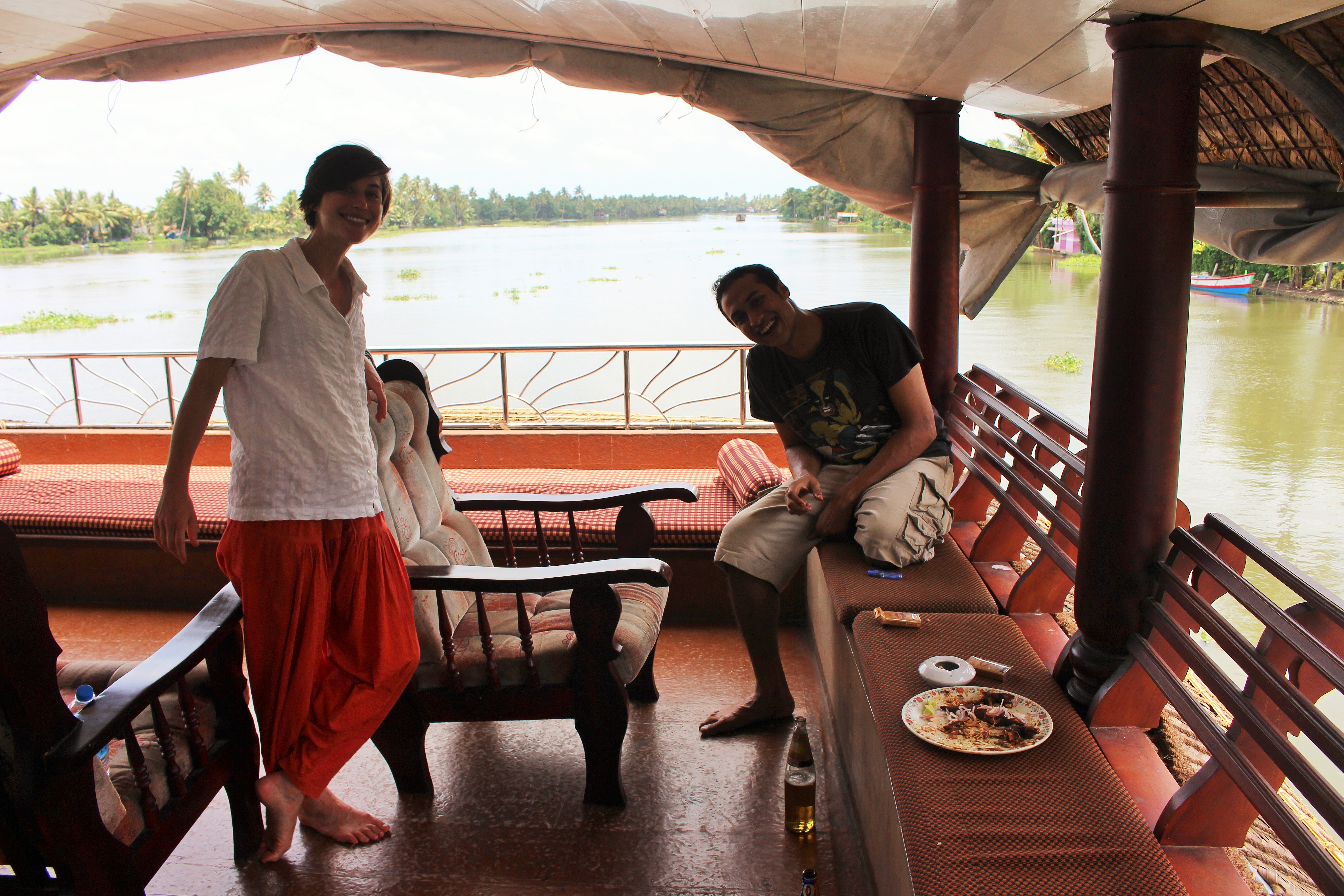 It was really quite sad to say good bye to Sri Lanka as we left beautiful Unawatuna beach for the airport at 4am. Such an amazing time we had had but it was time to make our way to the subcontinent of India. A long bus ride and a short flight from sunny Colombo and we landed in the southernmost Indian state of Kerala around noon. It was grey and rainy. Ugh. Our first destination would be the beach town of Varkala, a place often recommended by fellow travelers, guidebooks and fiends alike. But it was monsoon season you see and we arrived to a near deserted ghost town in heavy rain and soon discovered the beach was under 10 feet of raging brown water. As it is this type of year. Whoops. “UNAWATUNA!” we yelled, our arms reached outward to the sunshine and sparkling waters in Sri Lanka a few hundred kilometers away. Spending a day in Varkala we quickly recognized the egregious error of our ways and decided to press on, disheartened and in search of something very different. Now the state of Kerala is most famous for its “backwaters”, a massive series of lakes, rivers and channels that stretch for hundreds of kilometers throughout the lush green landscape. Our next stop, Alleppey, is a primary jumping off point to countless backwater adventures, so we set up base there to plan some fun. Making a pair of friends at the hostel on our first day, the four of us decided to rent a two bedroom rattan tea barge style houseboat (complete with chef and crew) for a few days to head out onto the waters. What an incredible experience! For two days our two story boat meandered lazily through canals, lakes and rivers with us lounging about on couches watching villages, fishermen and rice patties go by. At one point we stopped at a small hut on the palm tree lined river to purchase fresh fish and massive tiger prawns which our on board chef then cooked up exquisitely for us to eat on the roof patio of our boat. The traditionally prepared and flavorful food was outstanding. One afternoon while it was lightly raining we rented canoes and paddled through some of the smaller interconnecting canals upon which local villages are built. It was fascinating to see life on the canals as people fished from their front porches and did laundry in the river since there are no cars or roads in the area. Everyone has a canoe moored out in front of their small homes for transportation. They truly live on the water. The tree lined canals were so quiet, peaceful and immersed within nature you couldn’t help but be a little bit in awe of the people who lived in this beautiful setting. Spending the night on the water is always a treat and that evening our rustic houseboat was the perfect place to enjoy the sounds of nature all round us as the river current lapped gently on the hull.