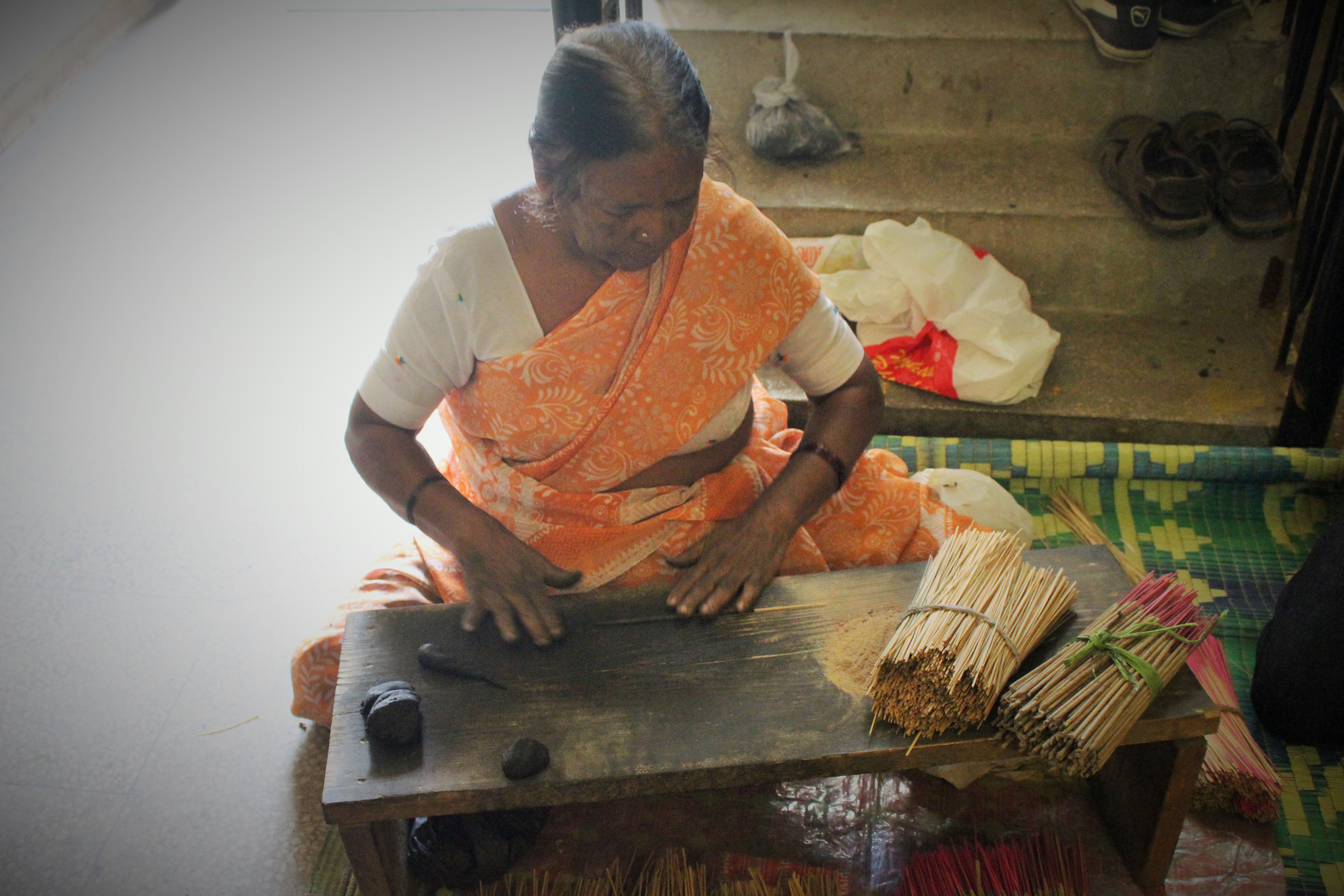 After a week of enjoying Kochi, we decided to continue our long journey north and next stopped at the former regional capital of Mysore. One of the most impressive structures we would see in India would be the incredibly ornate Mysore Palace. The former seat of the Wodeyar Maharajas, the Mysore palace is a grand collection of massive marble columned ballrooms and chambers adorned with spectacular stained glass domes and windows. Silver doors and mounted elephant heads only add to the heavily gaudy beauty of the magnificent palace. We spent a day wandering around its opulent corridors and grounds before choosing something a bit more down to earth for our next stop in Mysore. The beautiful Sri Chamundeswari Hindu Temple at the top of Chamundi Hill. A fully functioning ancient temple which overlooks the entire valley, Sri Chamundeswari was a great first experience learning about typical Hindu worshiping practices and iconography. While walking through the incense laden temple corridors we received orange thumb administered Bindis on our foreheads from a monk and beaded Ganesha bracelets that we still wear today. It was a great experience except for when Laura sat her drink down for a split second and a gang of monkeys descended out of nowhere to grab the cold beverage, startling the heck out of the two of us but making the locals laugh riotously. I feel like we make the locals laugh a lot on this trip, probably more often at us rather than with us but hey, spreading laughter around the world is spreading laughter around the world, right? I’m gonna keep telling myself that at least. For our final stop in Mysore we went to the home of a local incense maker who showed us how they make incense sticks completely by hand while sitting on the floor of their house. The old lady making the sticks had clearly been doing it for a lifetime and could make one every few seconds with her still nimble little aged hands.